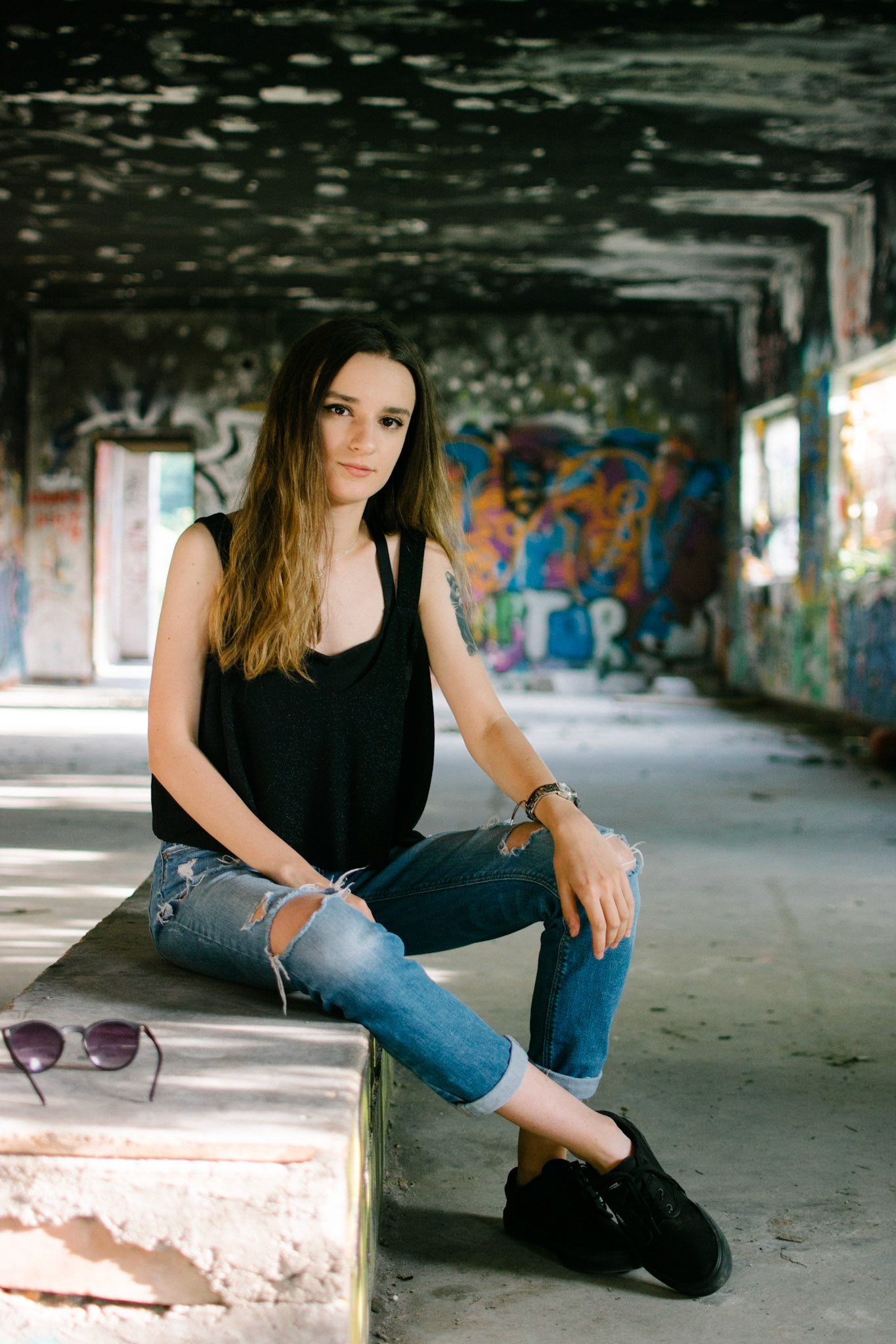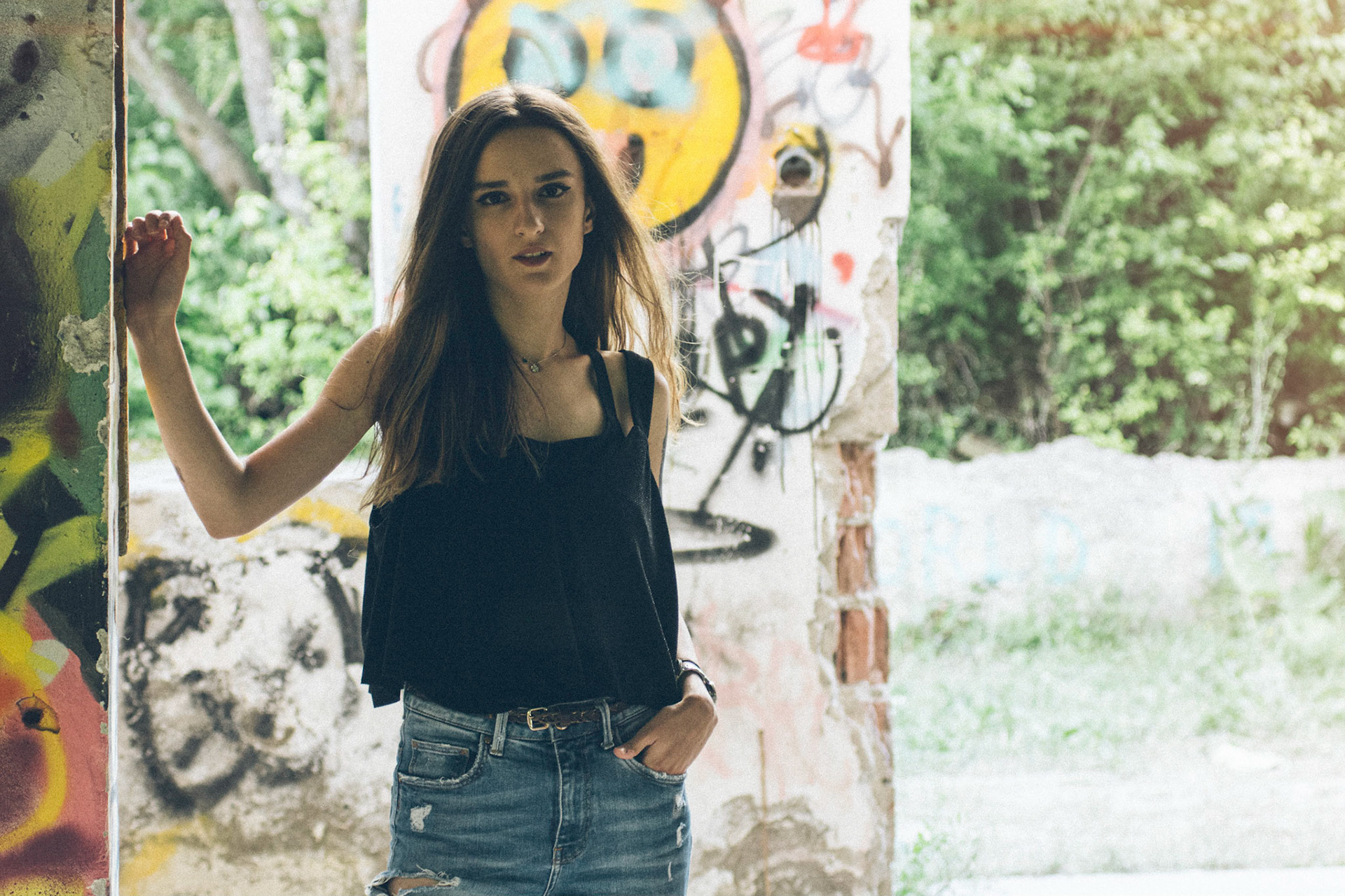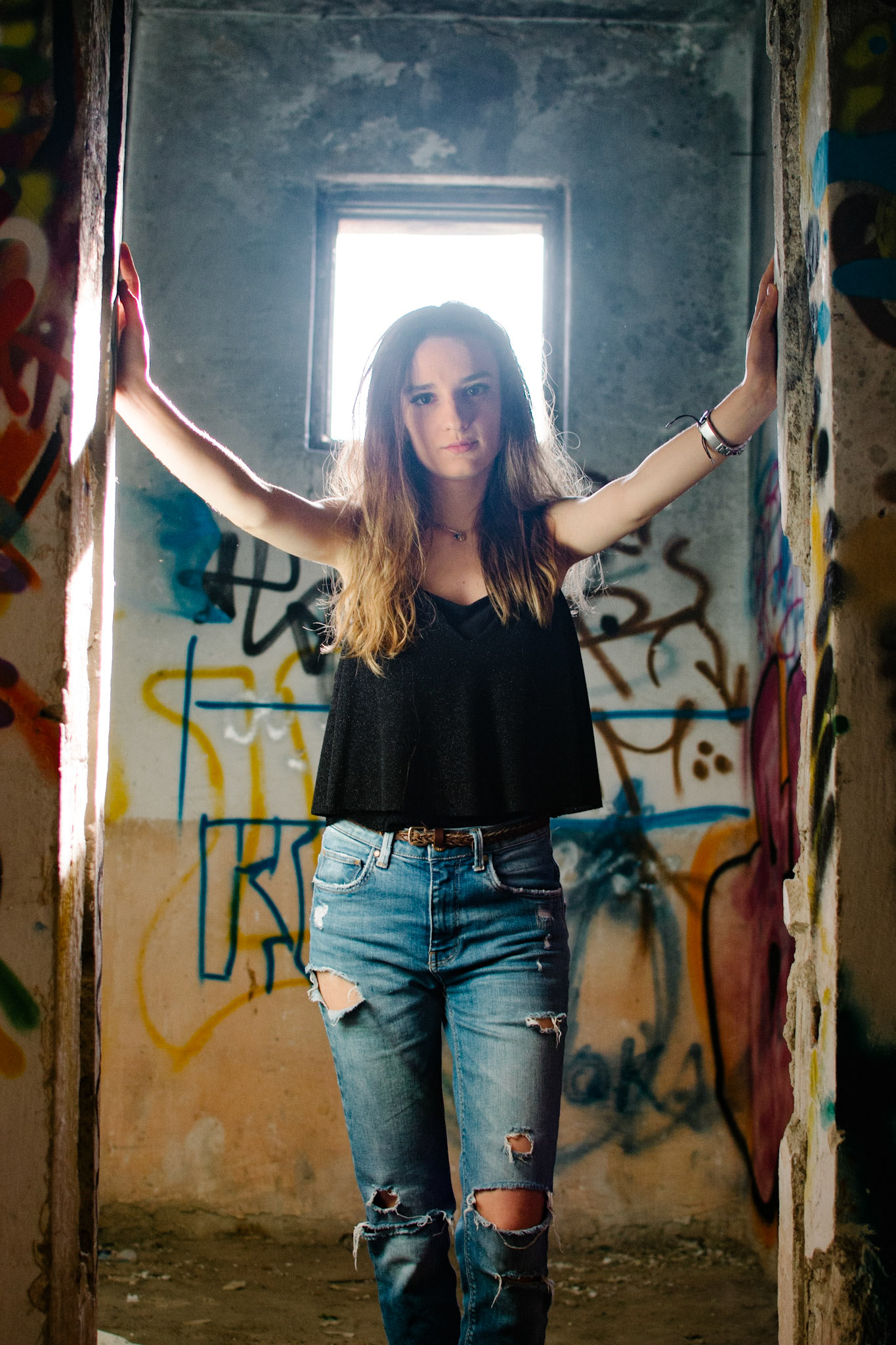 This was an unplanned addition to the "Meadow" shoot. Bianca's ability to adapt and work in different environments, allowed us to create a nice contrast, by falling back into a nearby abandoned building with awesome graffiti.