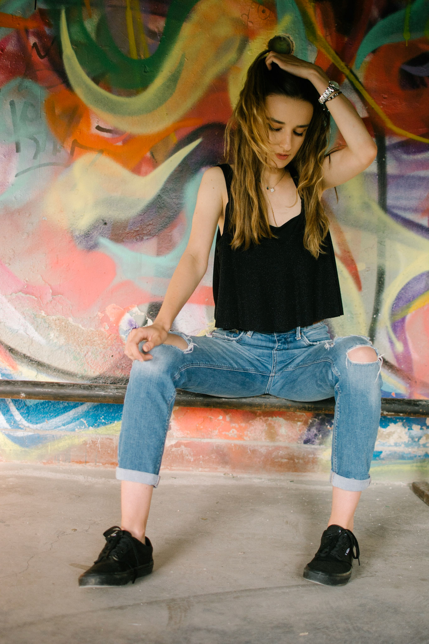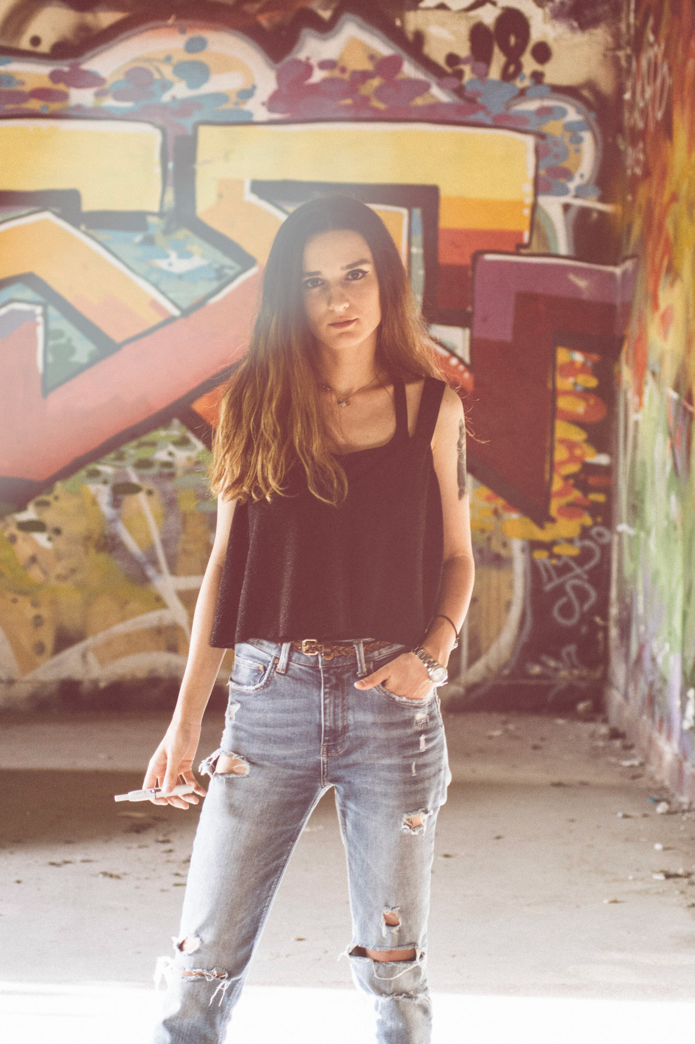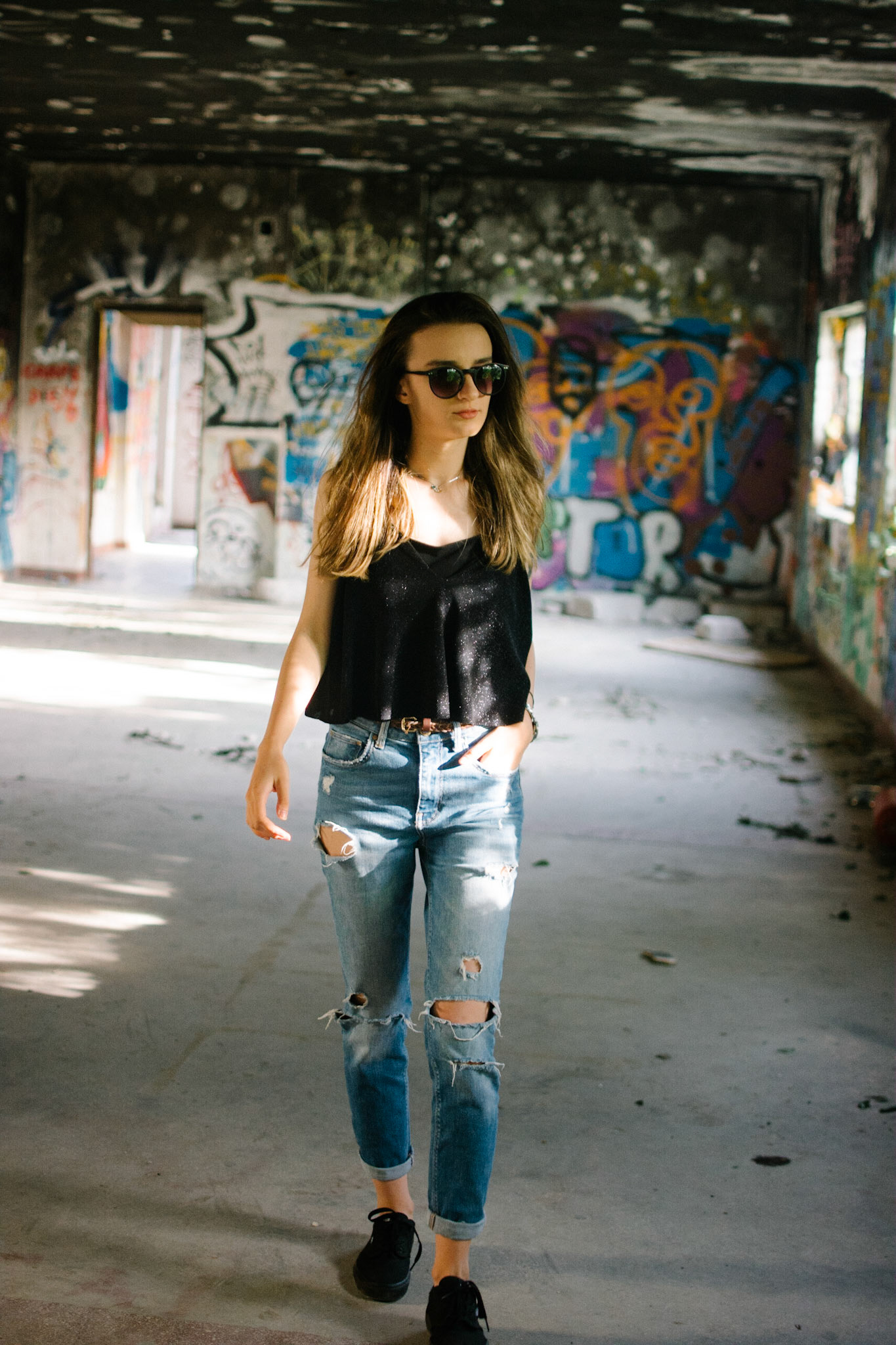 This was an unplanned addition to the "Meadow" shoot. Bianca's ability to adapt and work in different environments, allowed us to create a nice contrast, by falling back into a nearby abandoned building with awesome graffiti.