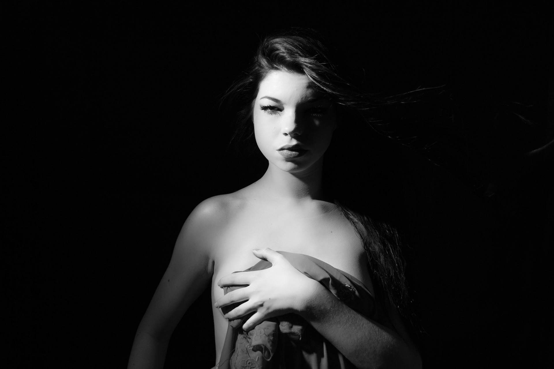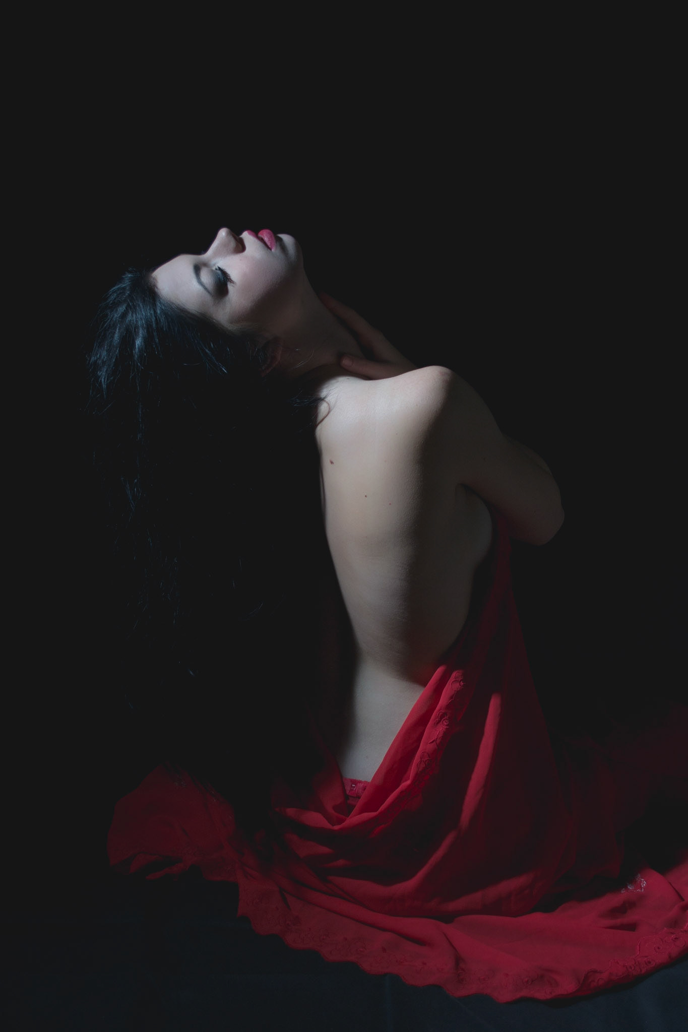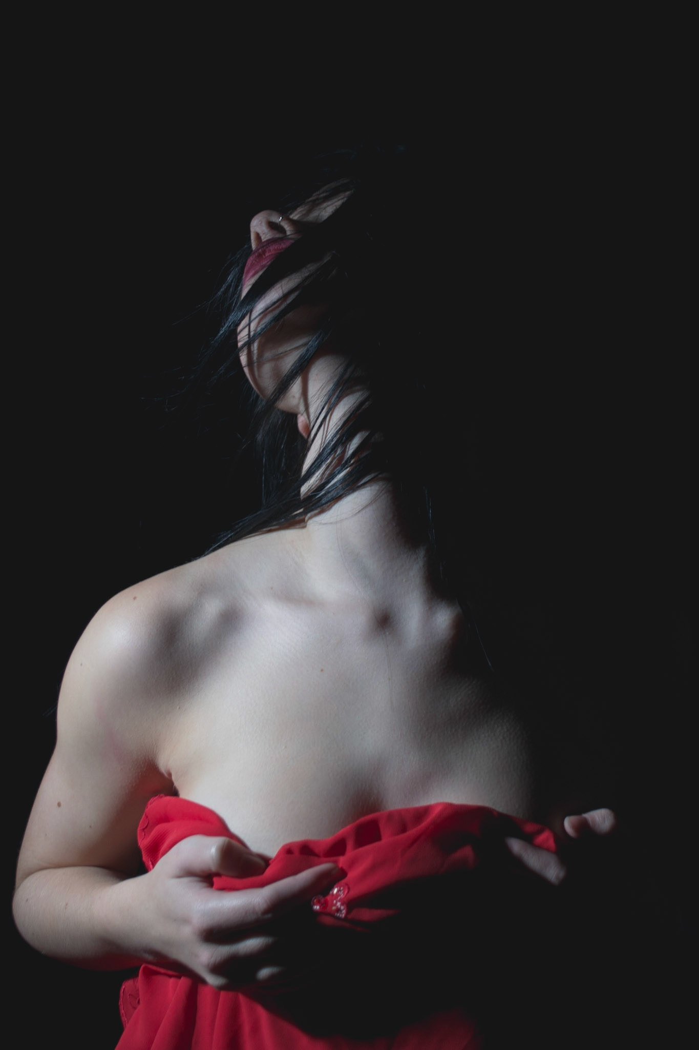Taken on 25 Sep 2013: A dash of colour in the darkness. Sensual tones, warm but cold at the same time. This session was a great experiment with light, shadows and the female form.
